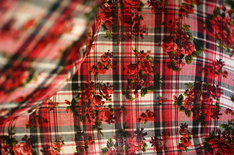 マドラスチェックを下地に使用し、スクリーンプリントやブロックプリントを載せることも可能です。