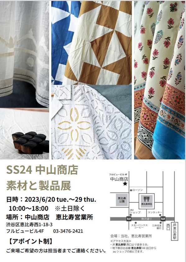 下記日程で、SS24向け素材と製品の展示会を開催いたします。